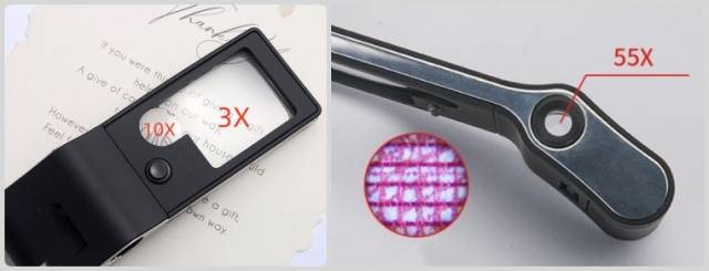 Označení: lupa s LED osvětlením, UV světlem a kapesním mikroskopem 55x s osvětlením