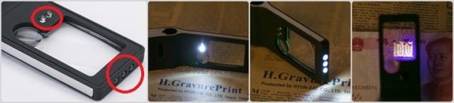 Označení: lupa s LED osvětlením, UV světlem a kapesním mikroskopem 55x s osvětlením